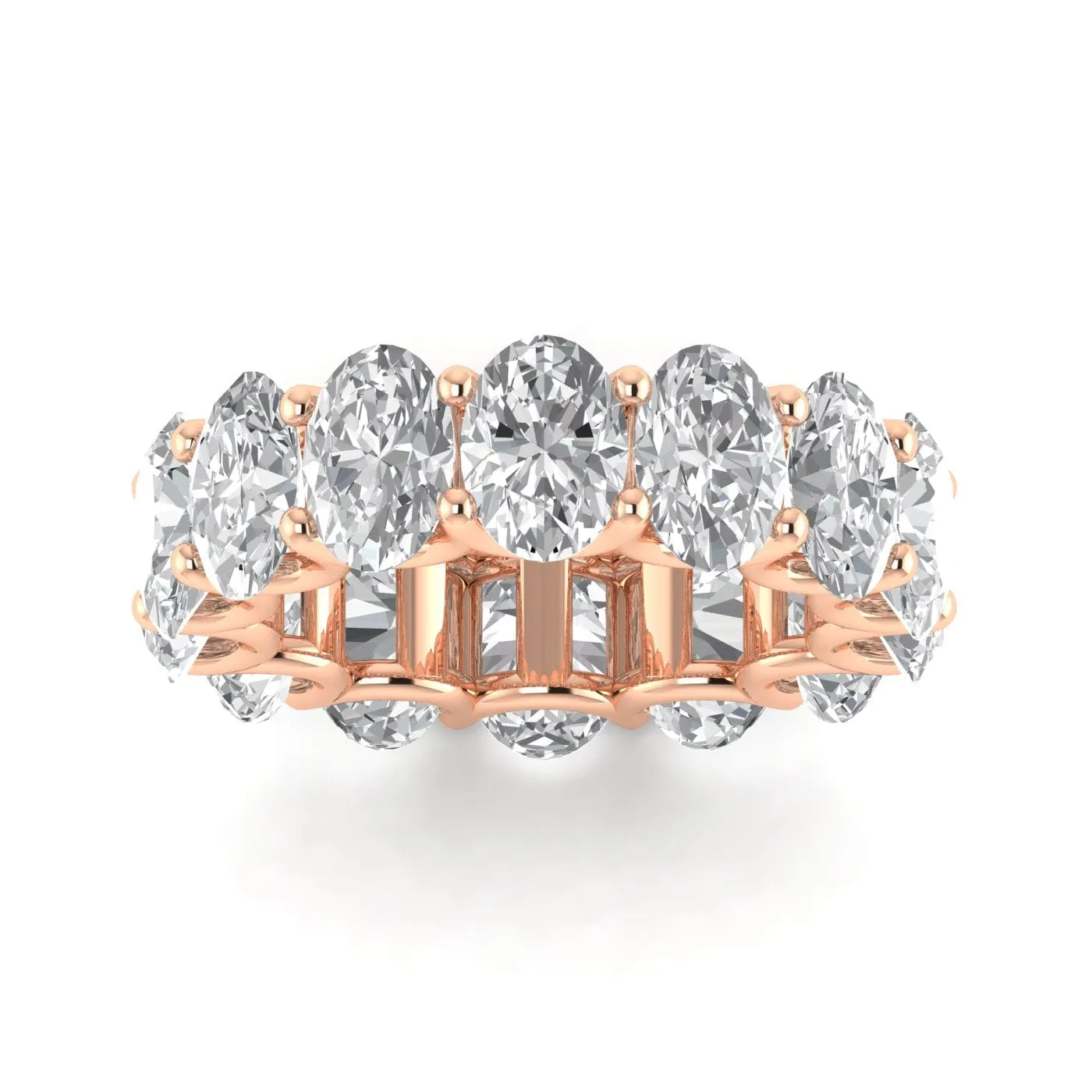 Eternity band of ovalwhite diamond rings available in any size of diamonds. 14K & 18K yellow, white, and rose gold oval eternity are a popular choice for engagement and wedding rings. Our unique prongsetting or U-shaped setting can be worn on any finger, stacked with multiple colors of gold and seen on the latest runways as well as with a casual outfit on the go.
