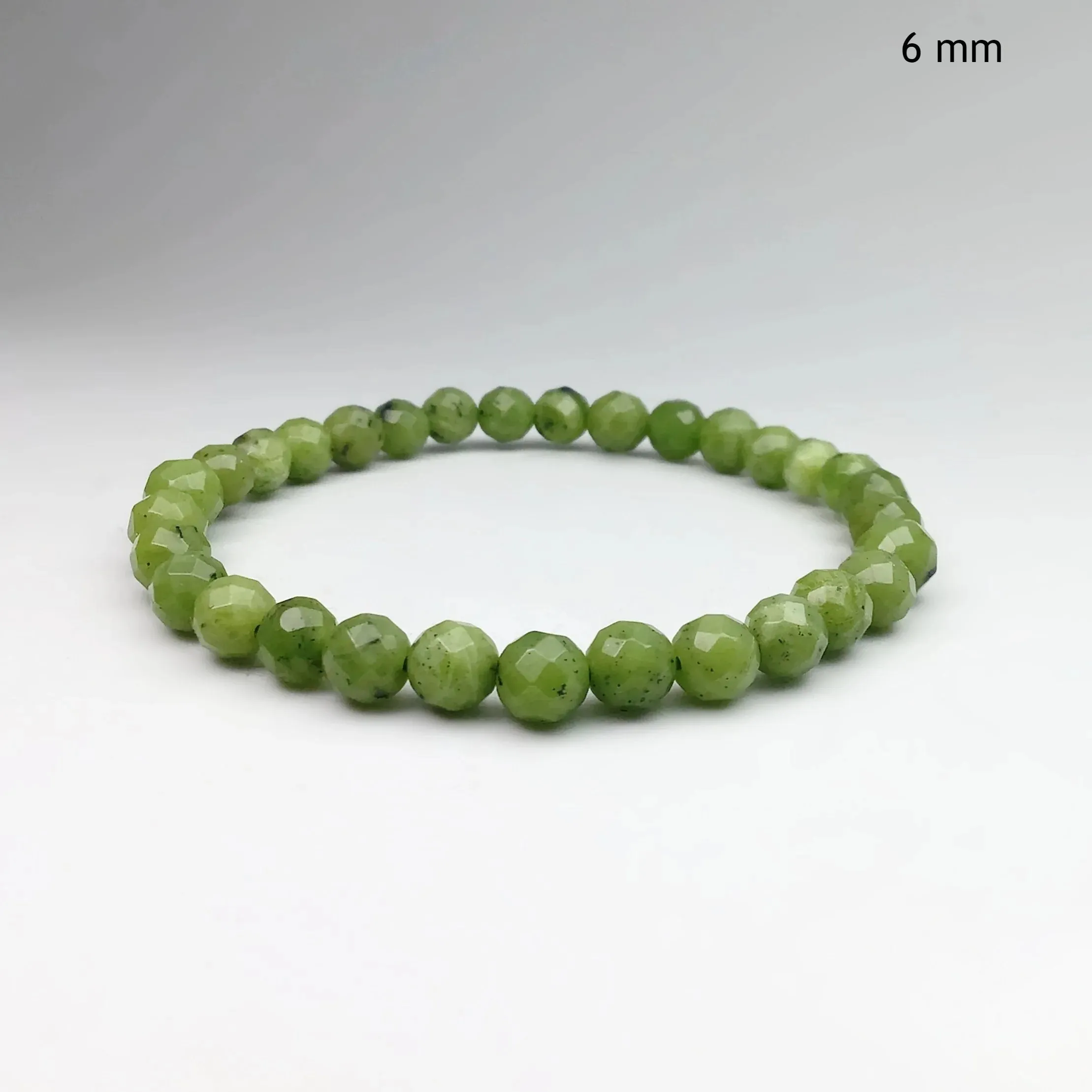 Each natural Canadian jade bead is skillfully polished individually, then drilled to create this colorful bracelet. Connected with jewellery elastic, this bracelet stretches to fit. Perfect for stacking with other bracelets or just to wear on its own. A must-have staple for any jewellery box.
