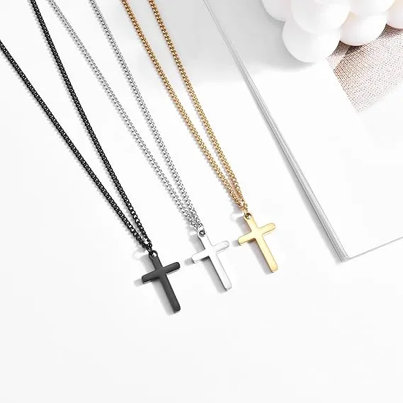 【SAFE MATERIAL OF CROSS NECKLACE】Made of 316L Stainless Steel, which is tarnish resistant, all high polished, bright and shiny with smooth edges | This cross chain necklace for men women is a beautiful, affordable alternative to solid silver that can also be worn by people with sensitive skin.