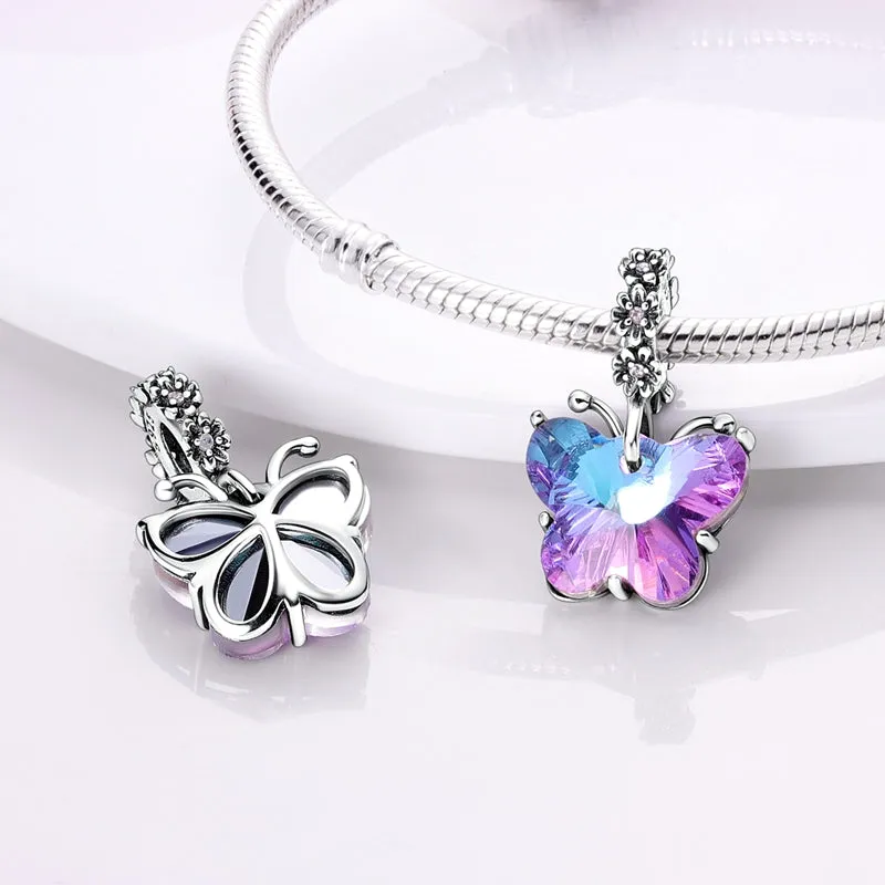 The Colourful Blue and Purple Butterfly Charm is a beautiful sterling silver charm that is compatible with Pandora bracelets. The charm is designed in the shape of an intricately detailed butterfly, with wings in mesmerizing shades of blue and purple. The colorful butterfly is adorned with sparkling diamante stones on its wings, adding extra flair to its vibrant design. The high-quality craftsmanship of this charm ensures that it will be a cherished addition to any charm collection. It's a perfect gift for anyone who loves nature or who appreciates the beauty of a delicate butterfly. With its stunning design and expertly crafted construction, the Colourful Blue and Purple Butterfly Charm is a must-have for any jewelry enthusiast.
