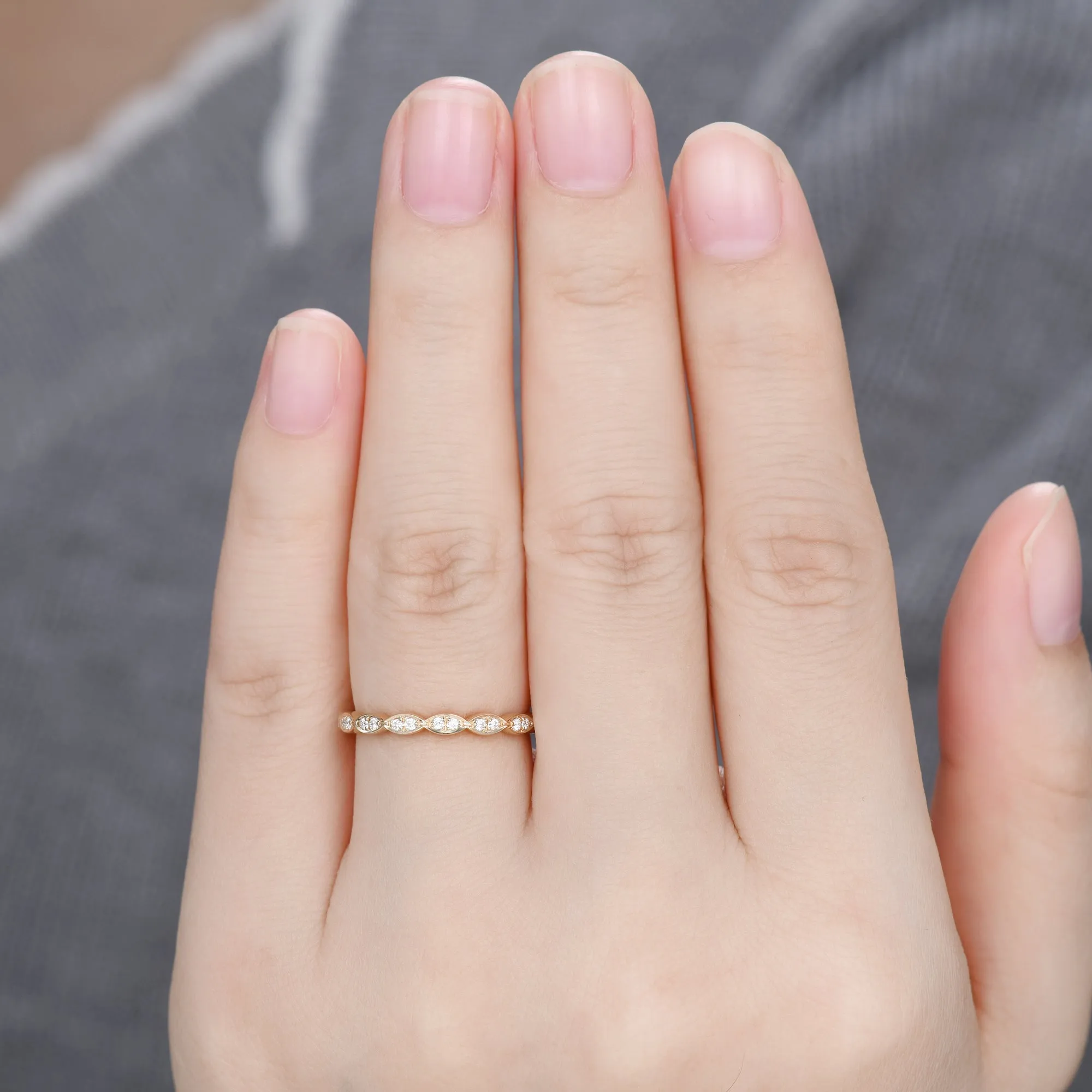 Diamond 14k Yellow Gold Wedding Band Engagement Ring Half Eternity Antique Stacking Matching Bridal Promise Anniversary Gift Marquise