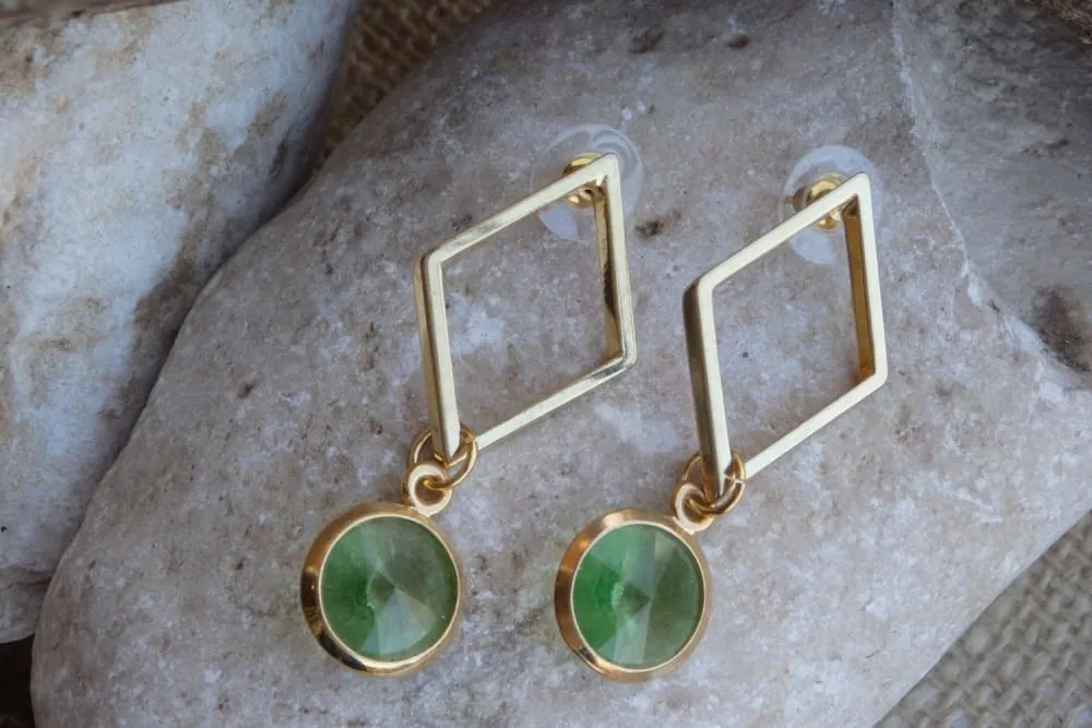 This geometric pair of earrings with green Rebeka are a flattering accessory for both casual and evening wear.
