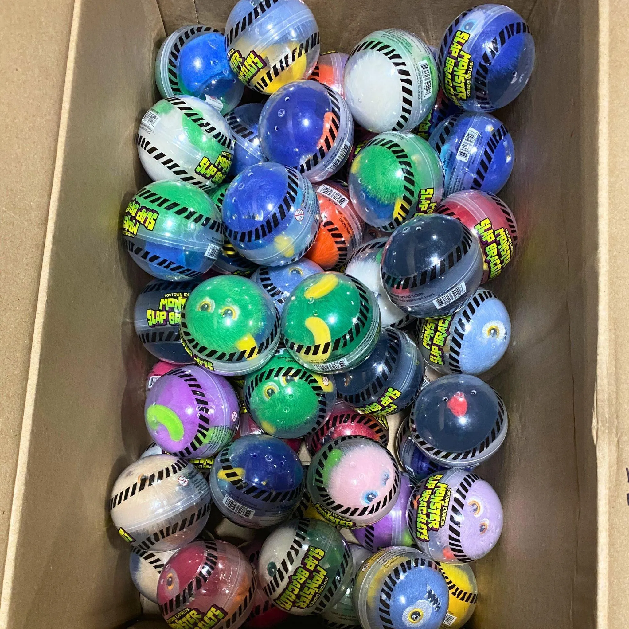 Get kids excited with ToyTown Express Monster Slap Bracelets—a playful and trendy accessory. This 55-piece lot features colorful monster-themed designs, perfect for parties, giveaways, or everyday fun. These bracelets are lightweight, easy to ship, and a proven favorite for online reselling, bin stores, and discount shops.